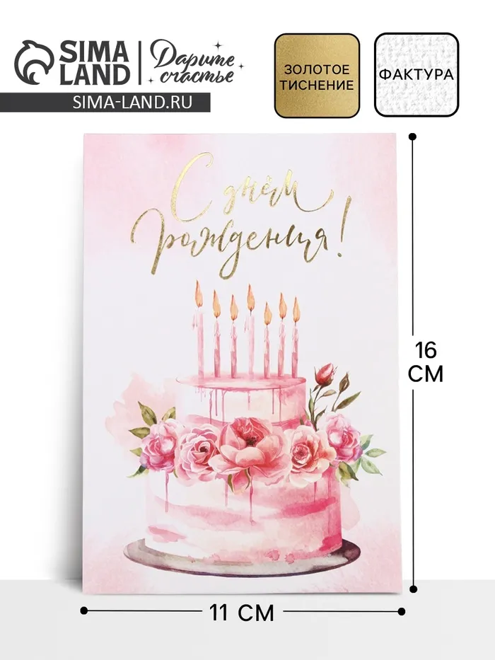 Конверт подарочный «С днём рождения!», акварельный картон, тиснение, 11 х 16 см — Характеристики