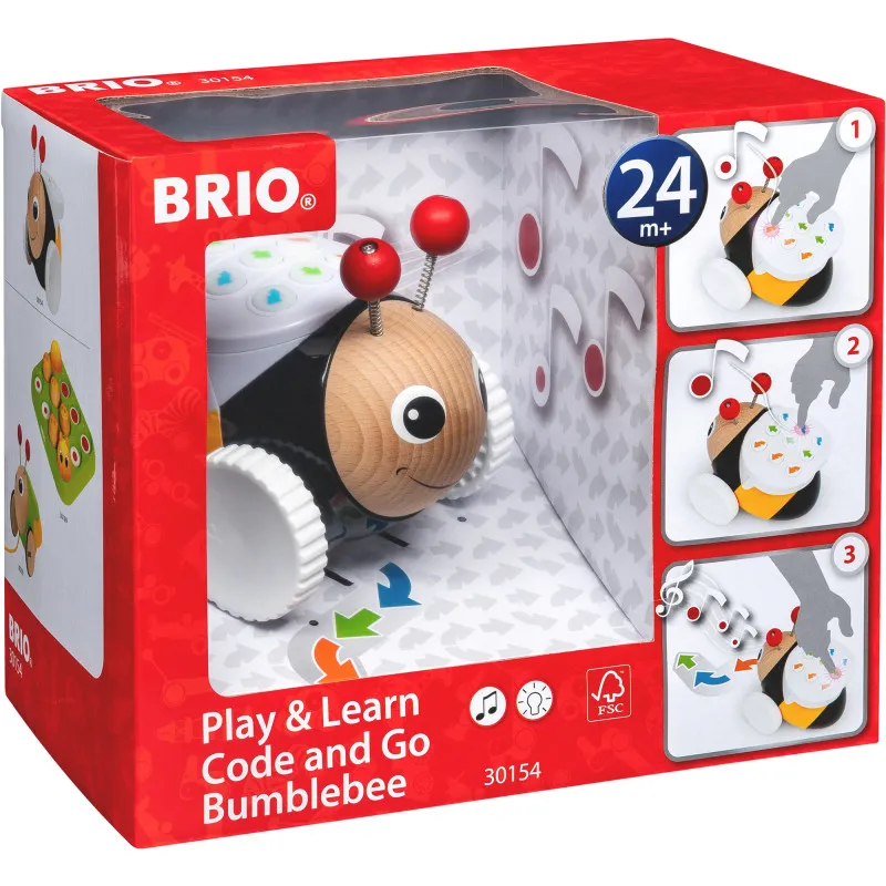 Brio Программируемая пчела 30154 познакомит детей с обучением STEM и программированием с раннего возраста. Веселая маленькая пчела выполняет команды своего обучающегося программированию друга. Световые и звуковые эффекты помогают сохранить интерес малышей, сосредоточиться на программировании и изучении нового. Изготовлена из европейского бука и высококачественного пластика. Содержит металлические детали. Рекомендуемый возраст: от 2 лет.
