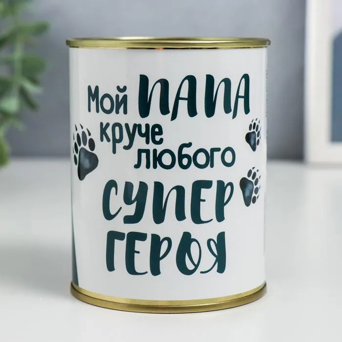 Копилка-банка металл "Мой папа круче любого супер героя" — Характеристики