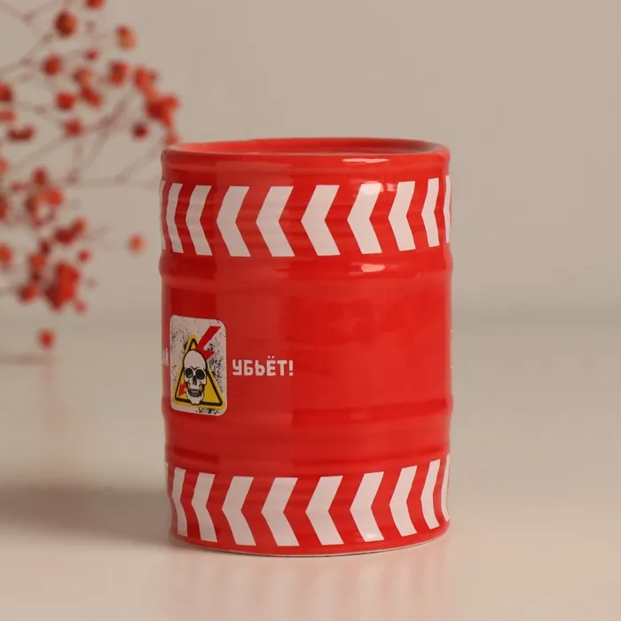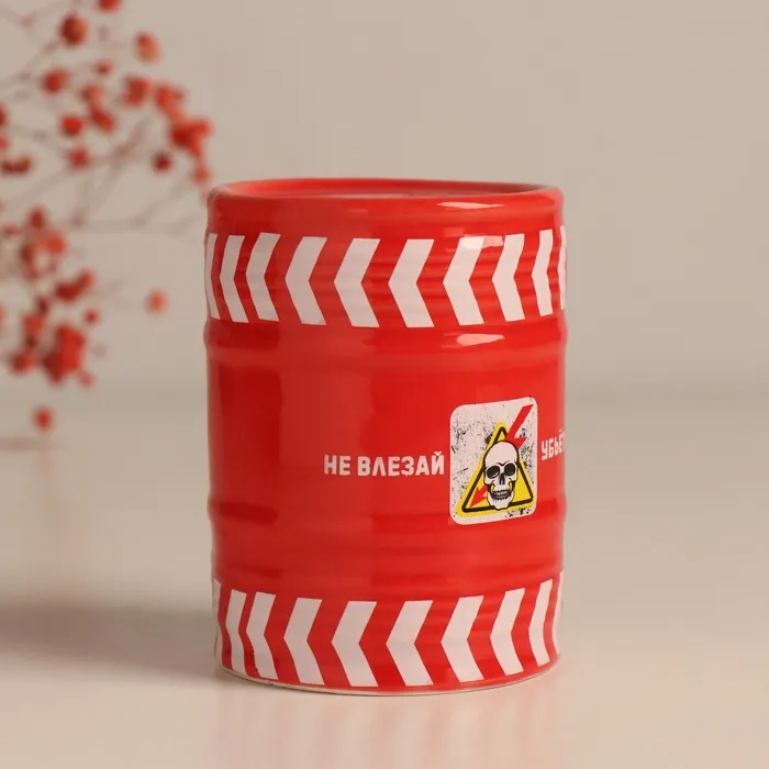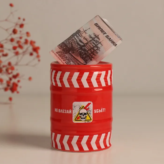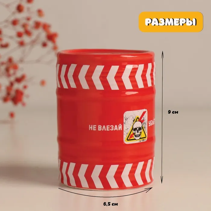 Копилка для денег «Банка-бочка. Не влезай убьёт!», керамика, красная, 6.5×6.5×9 см — Характеристики