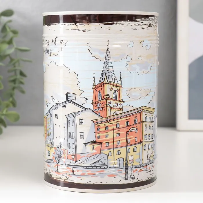Перед вами не просто ёмкость для хранения мелочи, а миниатюрное произведение искусства в духе городской эстетики. Эта стильная металлическая банка с изображением городского пейзажа превращает процесс накопления в элегантный ритуал для ценителей современного дизайна.