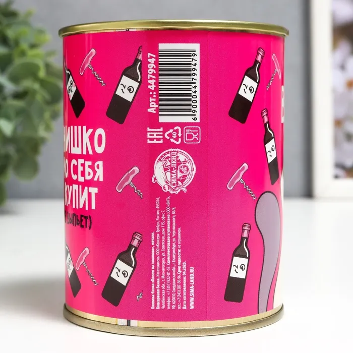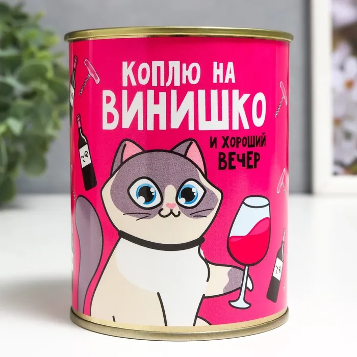 Копилка для денег «Банка. Коплю на винишко», металл, 7.3×9.5 см — Характеристики