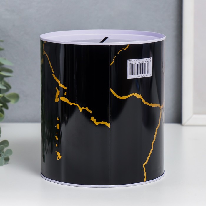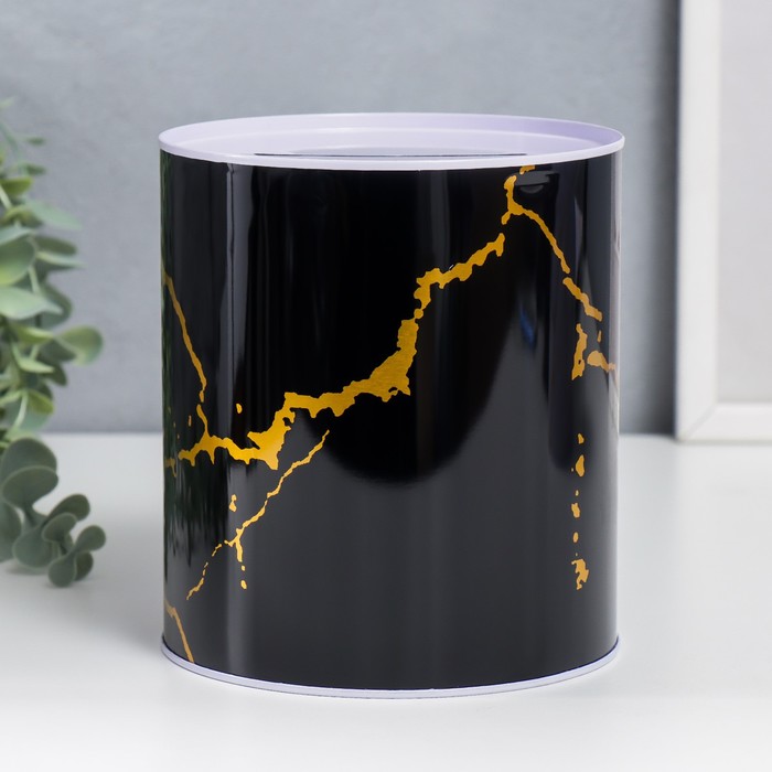 Копилка для денег «Банка. Мрамор с золотыми трещинами», металл, 15.5×13.5×13.5 см, МИКС — Характеристики
