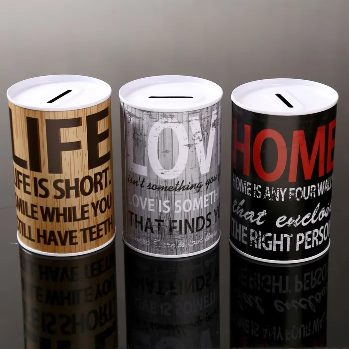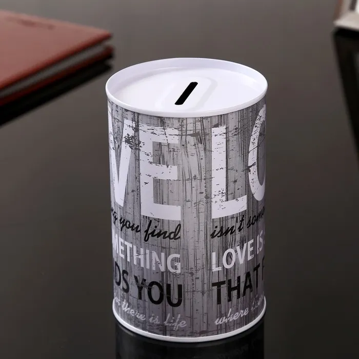 Копилка для денег «Банка. Надписи», металл, 12×8×8 см, МИКС — Характеристики
