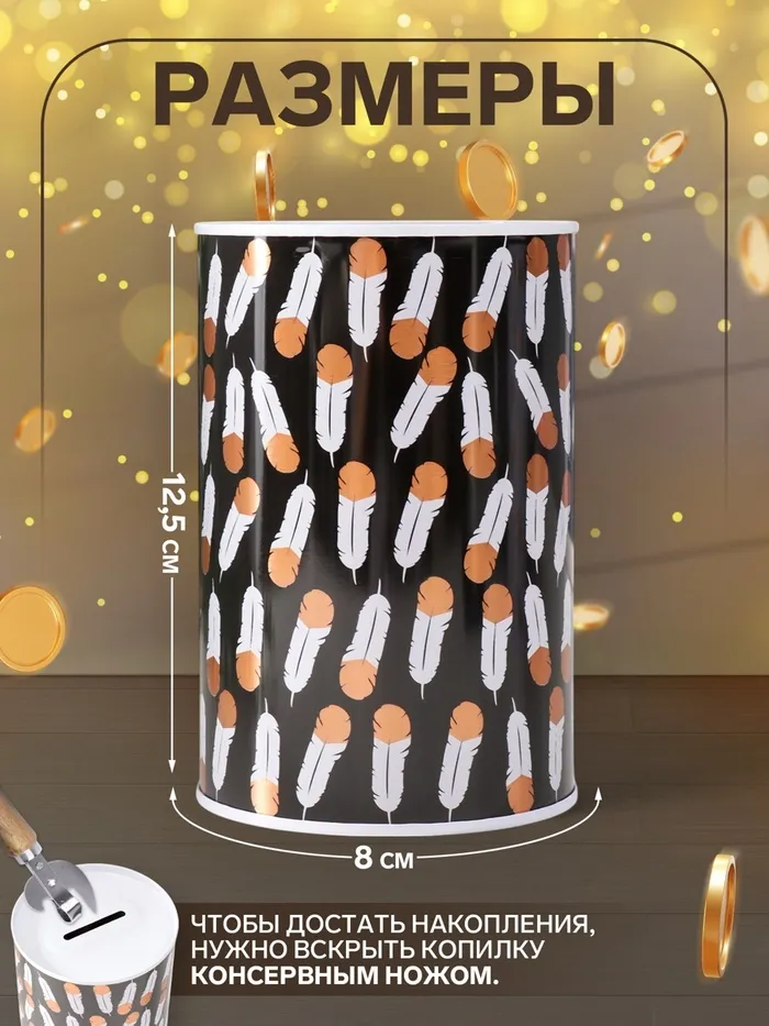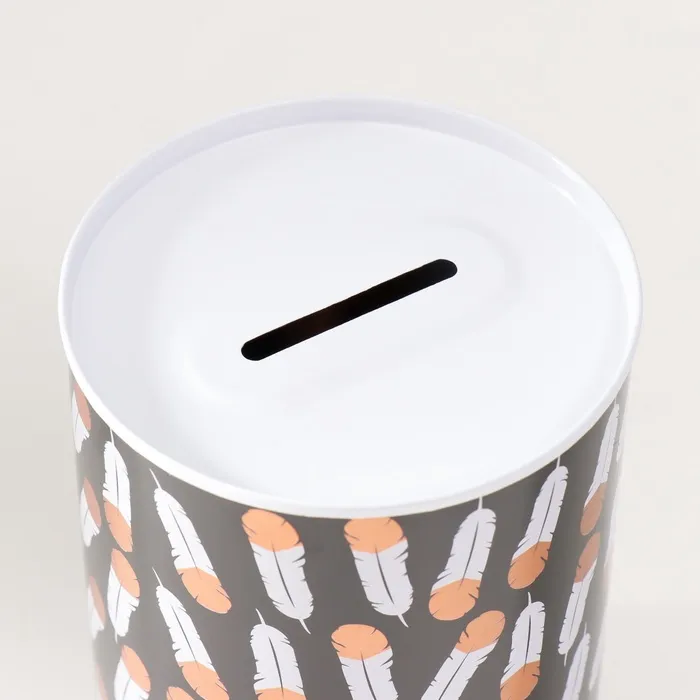 Копилка для денег «Банка. Пёрышки», металл, 8×8×12.5 см, МИКС — Характеристики