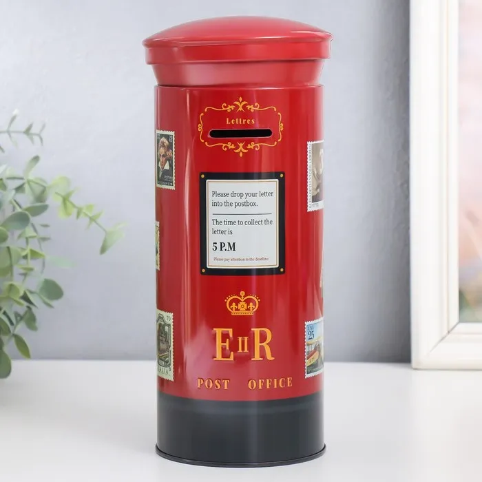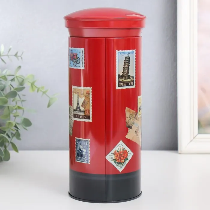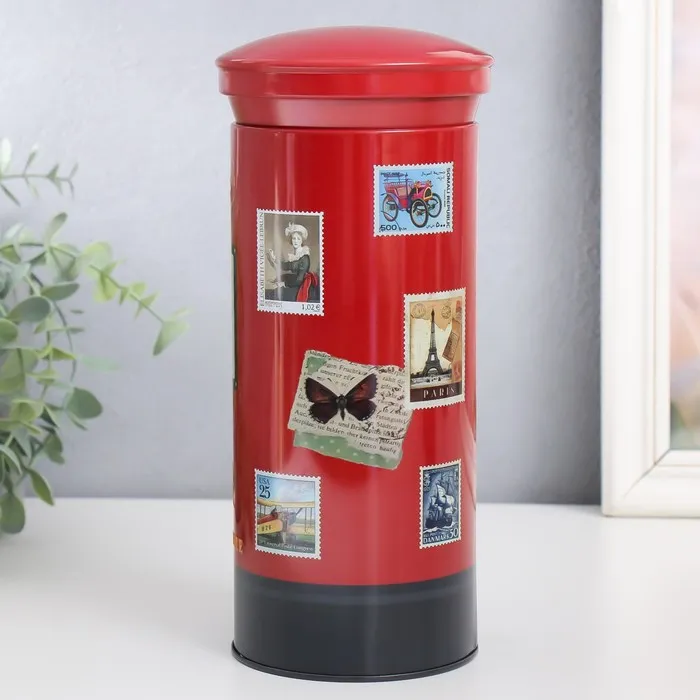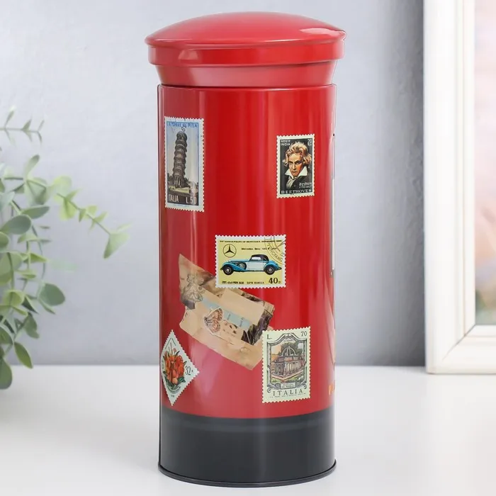 Представляем вам необычный аксессуар, который сочетает в себе функциональность и ностальгическую эстетику. Эта копилка в форме почтового ящика с элементами марок привлекает внимание своей уникальной тематикой, напоминая о временах, когда письма и открытки были главным способом общения.