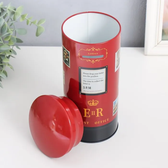 Изготовленная из прочного металла с красочным покрытием, копилка отличается долговечностью и устойчивостью к повреждениям. Её размеры (11×11×20 см) позволяют легко разместить её на полке, рабочем столе или даже использовать как стильный декоративный элемент. Открытый тип конструкции обеспечивает удобство добавления монет и купюр, а тематика писем, газет и марок добавляет игривости и делает её особенно привлекательной для коллекционеров и любителей оригинальных вещей.