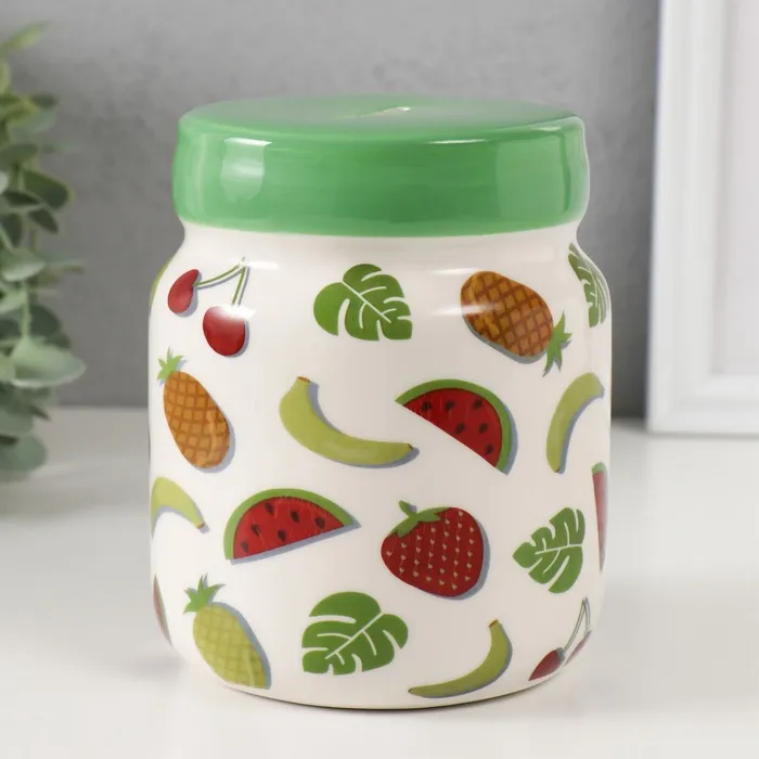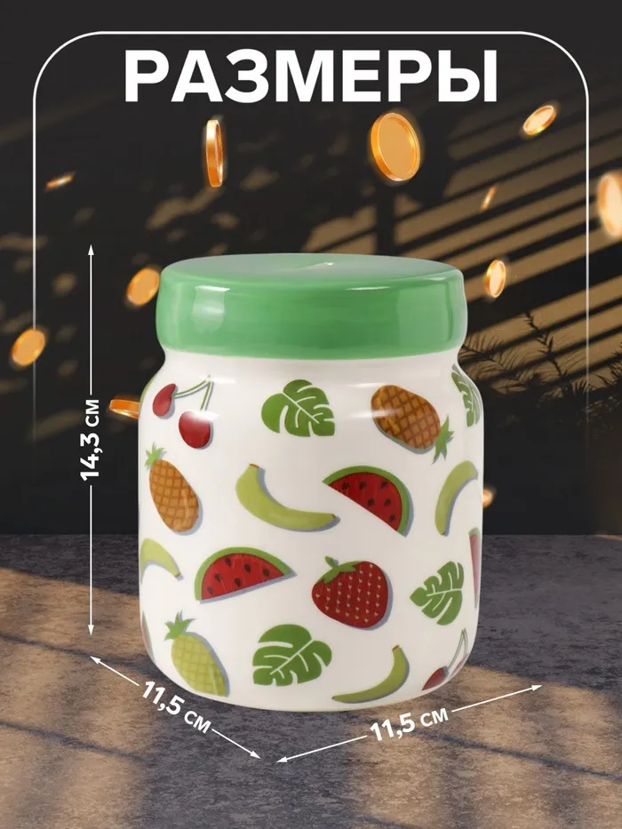 Копилка для денег «Банка с фруктиками», керамика, 11.5×11.5×14.3 см — Характеристики