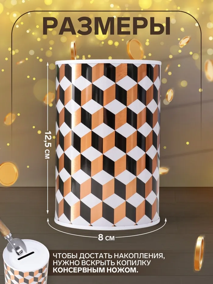 Копилка для денег «Банка. Соты/кубики», металл, 8×8×12.5 см, МИКС — Характеристики