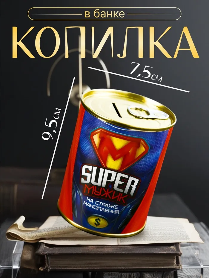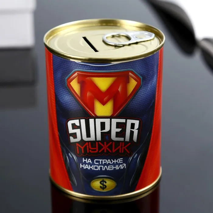 Копилка для денег «Банка. Super мужик», металл, 7.3×9.5 см — Характеристики