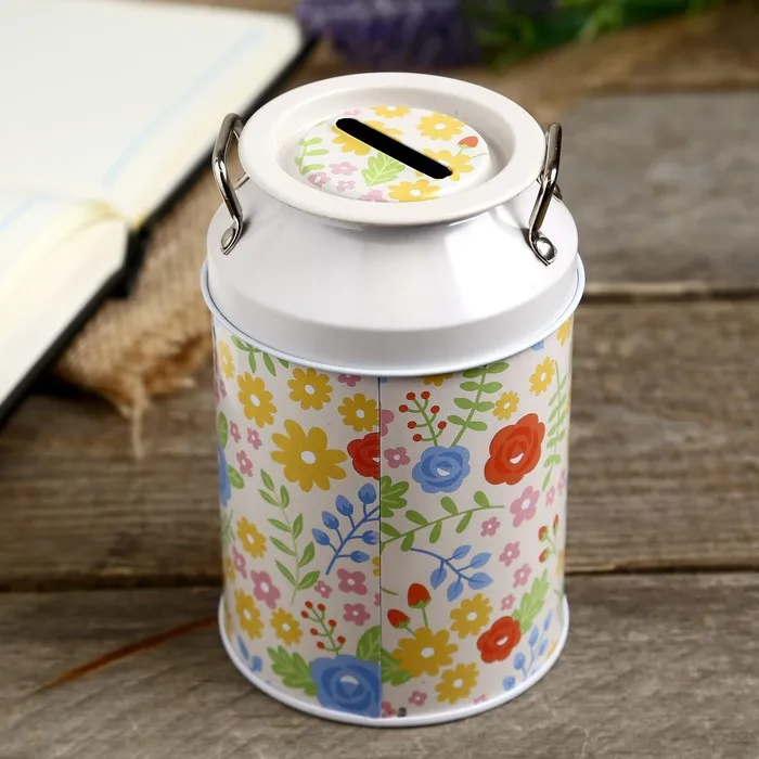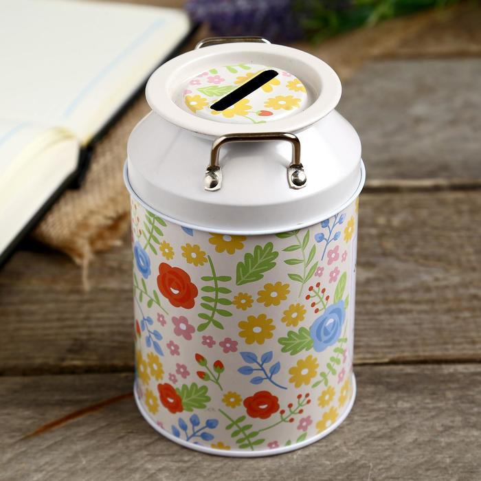 Копилка для денег «Банка. Цветочная полянка», металл, 13×8×8 см, МИКС — Характеристики