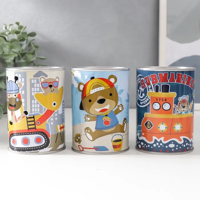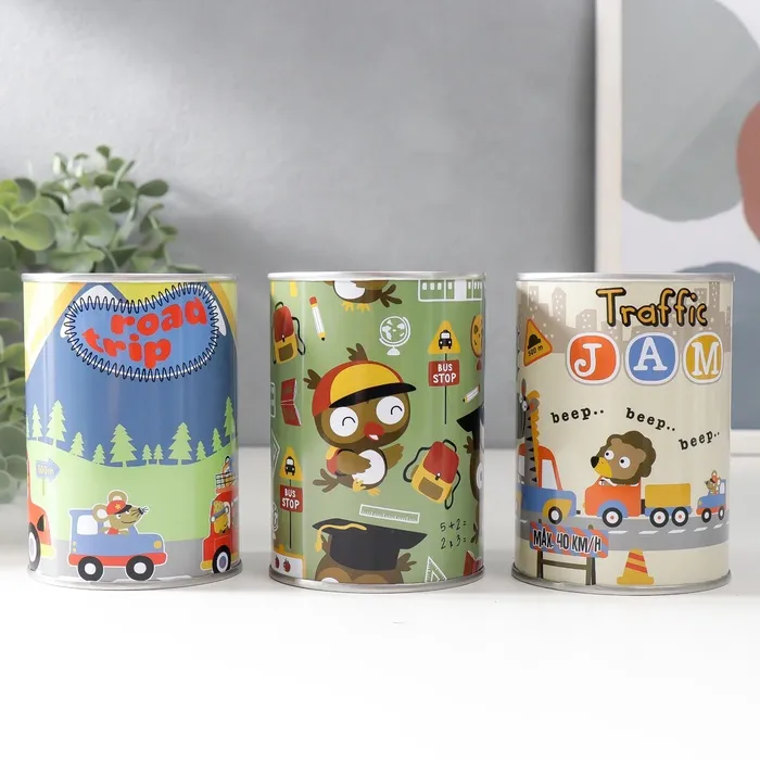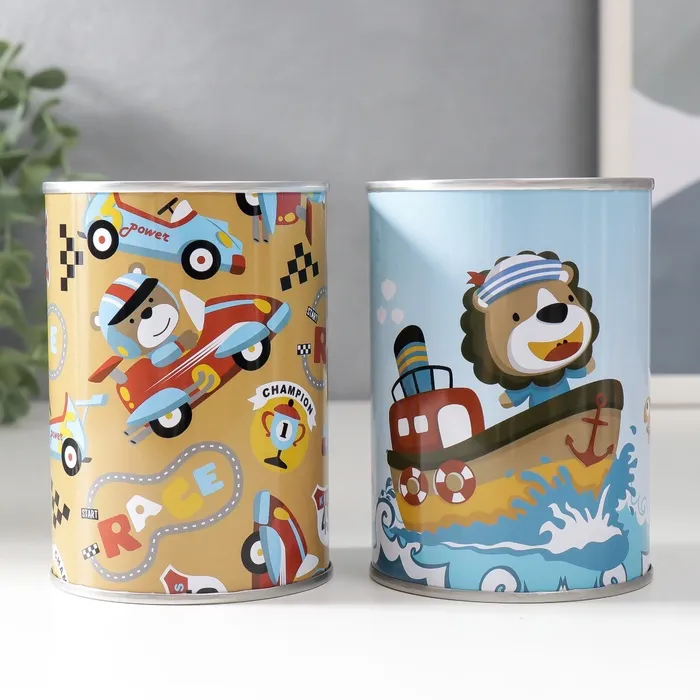 Копилка для денег «Банка. Весёлые приключения», металл, 7.5×7.5×10 см, МИКС — Характеристики