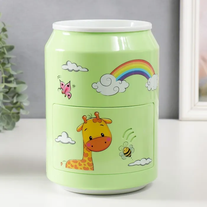 Копилка для денег «Банка. Жирафики», с кодовым замком, звуковая, от АА, зелёный, 15×21 см — Характеристики
