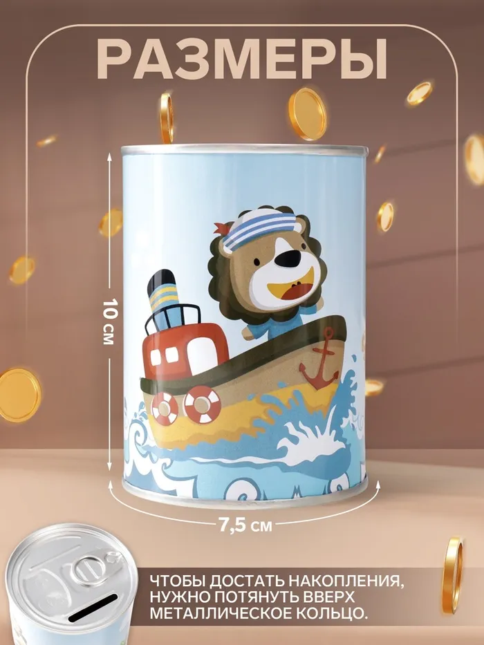 Копилка для денег «Банка. Весёлые приключения», металл, 7.5×7.5×10 см, МИКС