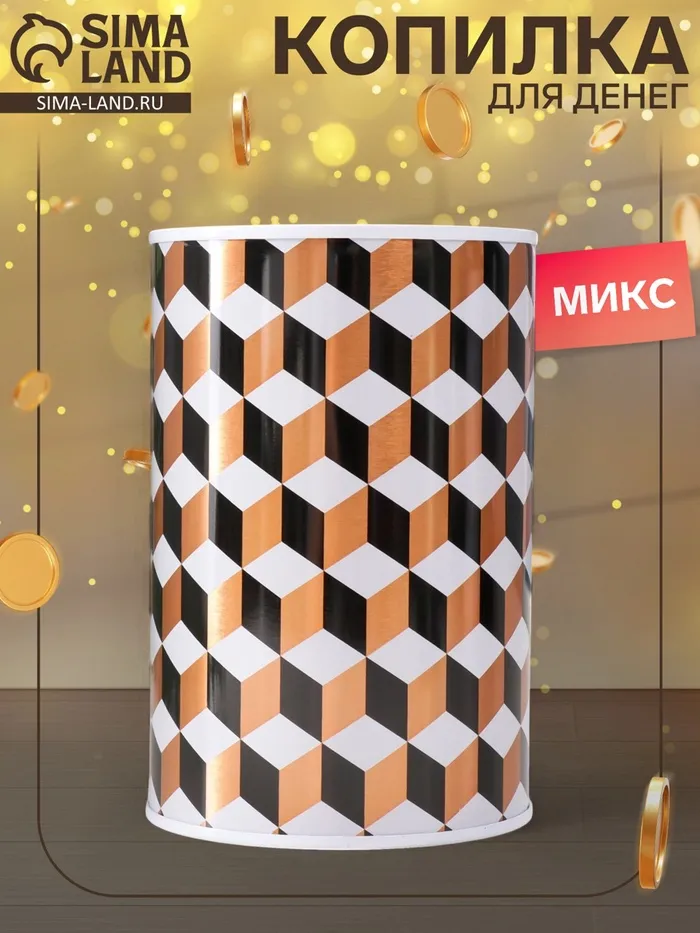 Копилка для денег «Банка. Соты/кубики», металл, 8×8×12.5 см, МИКС