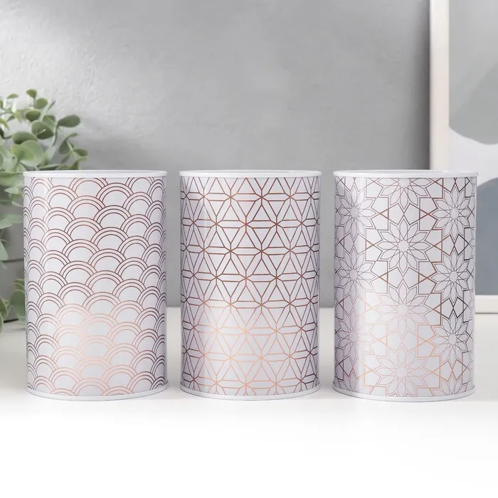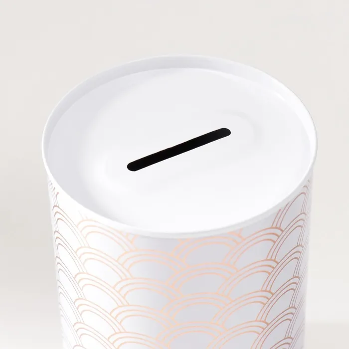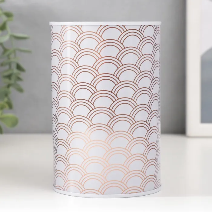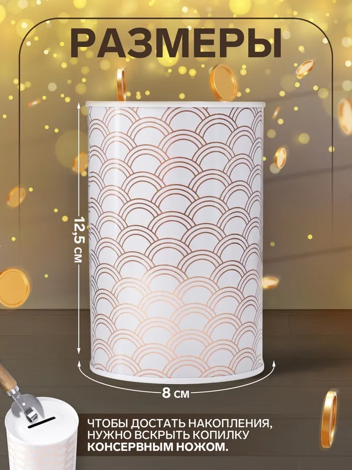 Копилка для денег «Банка. Золотые узоры на белом», металл, 8×8×12.5 см, МИКС — Характеристики