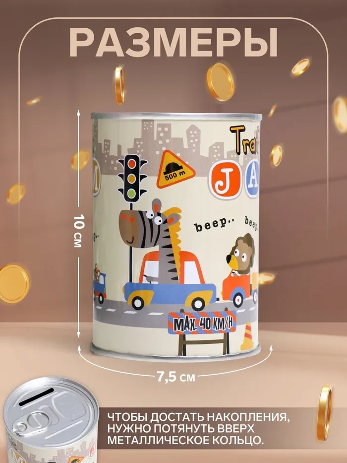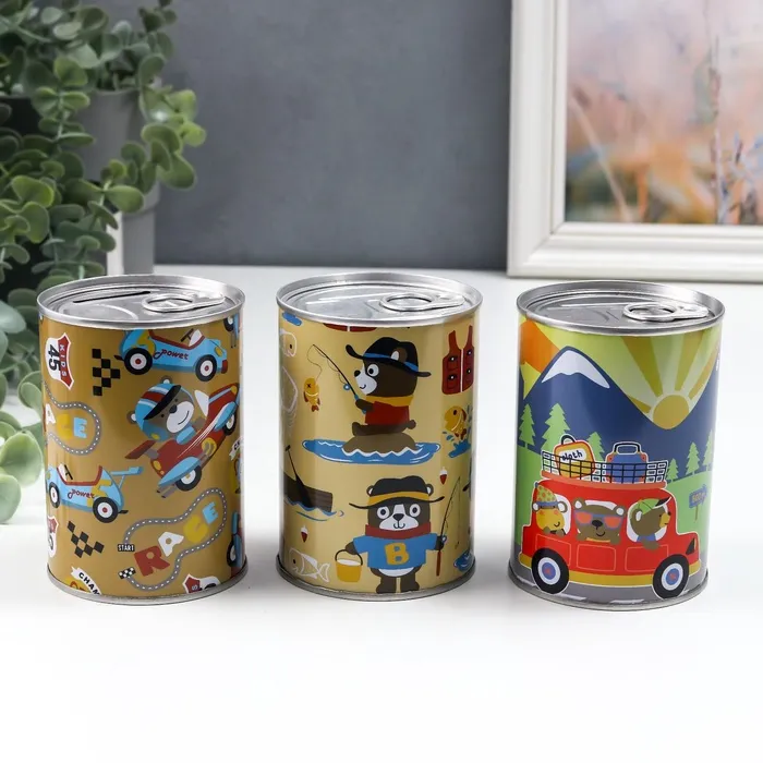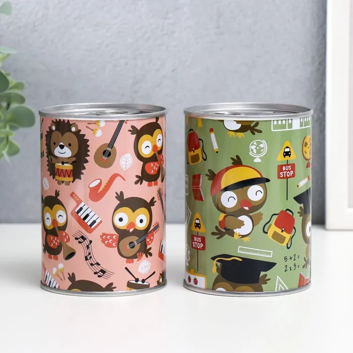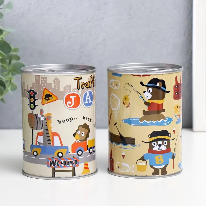 Копилка для денег «Банка. Зверята и хобби», металл, 10×7.5×7.5 см, МИКС — Характеристики