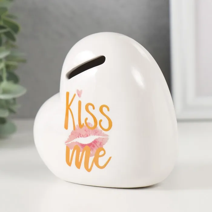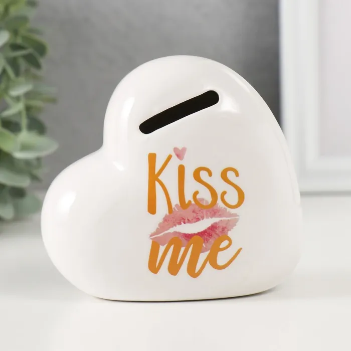 Копилка для денег «Белое сердце. Kiss me», керамика, 11×5×10.5 см — Характеристики