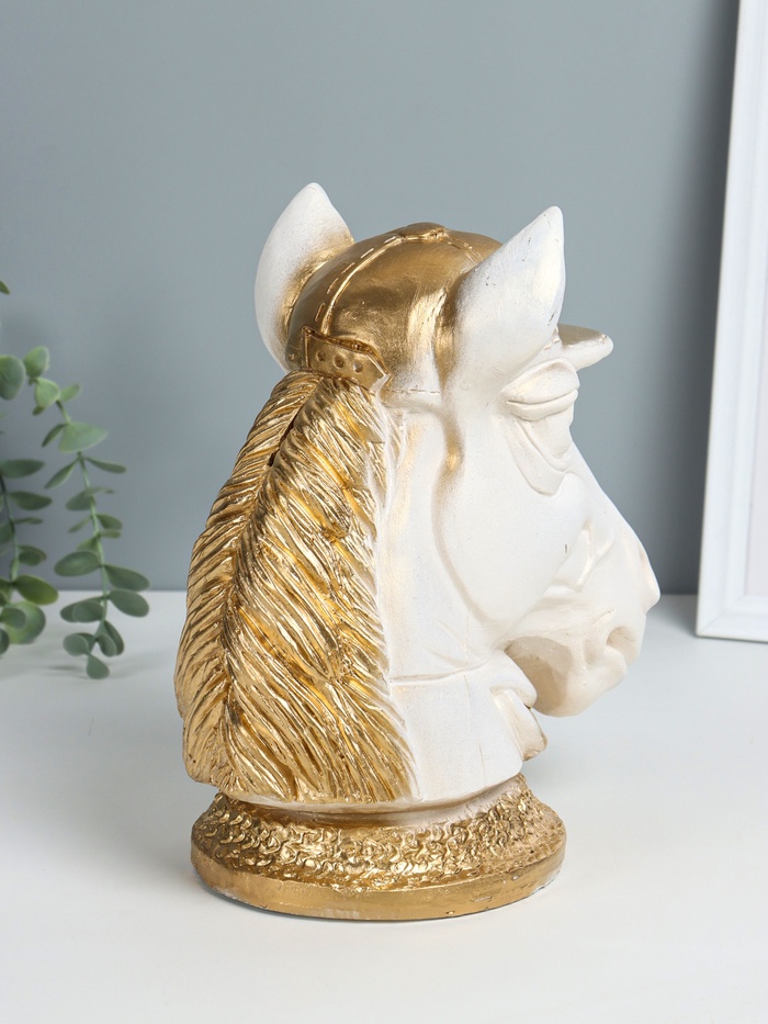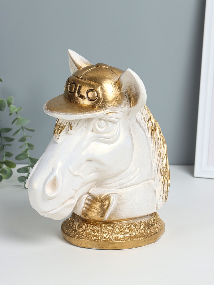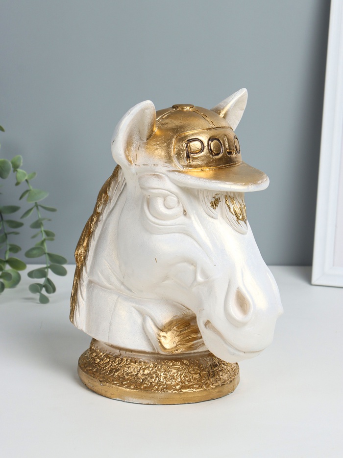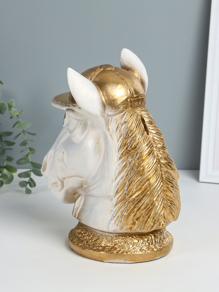 Копилка для денег «Бюст. Конь в кепке», гипс, 26×14.5×21.5 см, белый с золотом — Характеристики