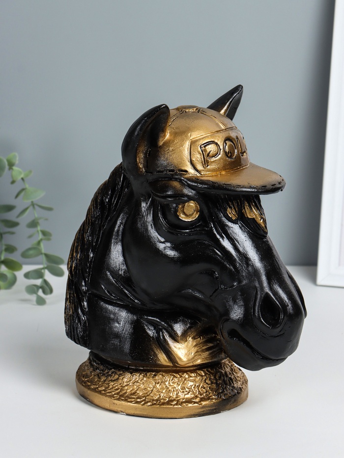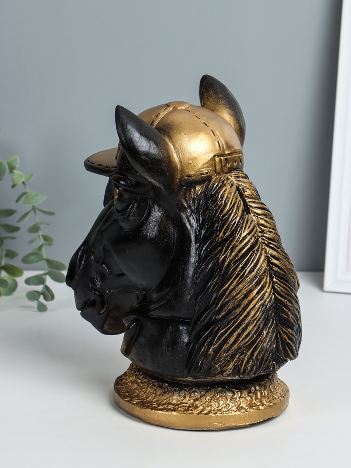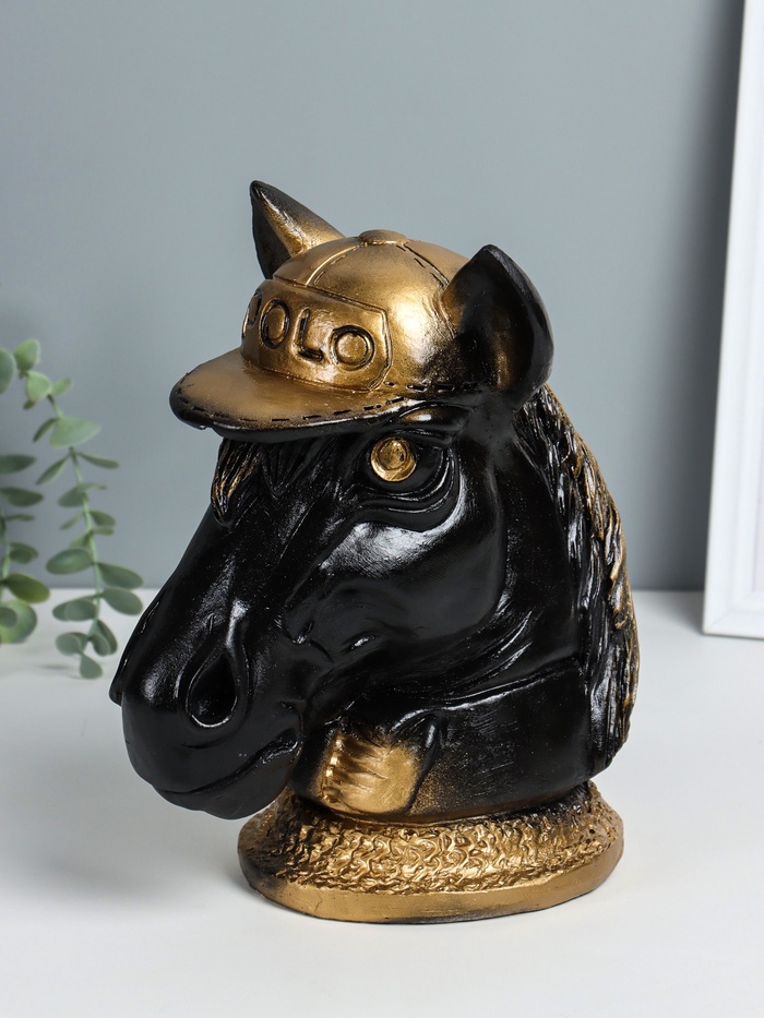 Копилка для денег «Бюст. Конь в кепке», гипс, 26×14.5×21.5 см, чёрный с золотом — Характеристики