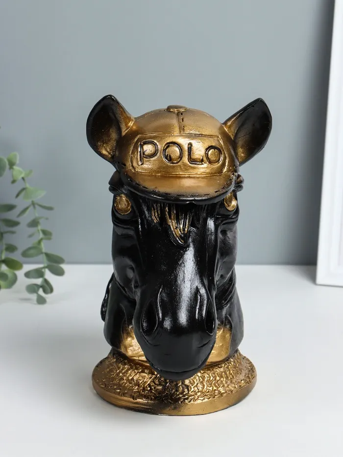 Копилка для денег «Бюст. Конь в кепке», гипс, 26×14.5×21.5 см, чёрный с золотом — Характеристики