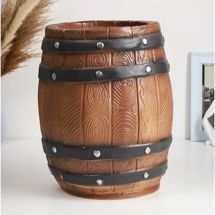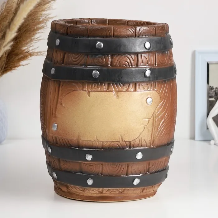 Стильная и надежная копилка в форме бочки — это не просто место для хранения монет, а настоящий акцент интерьера. Ее строгая геометрия и мягкий коричневый оттенок идеально вписываются как в домашнюю обстановку, так и в офисное пространство. Изготовленная из прочного гипса и покрытая защитным лаком, эта модель сочетает в себе эстетику и долговечность.