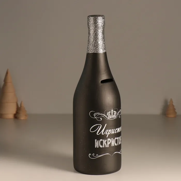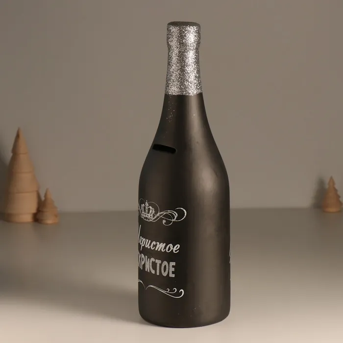 Копилка для денег «Бутылка. Игристое искристое», чёрная, керамика, 9.5×9.5×30 см — Характеристики