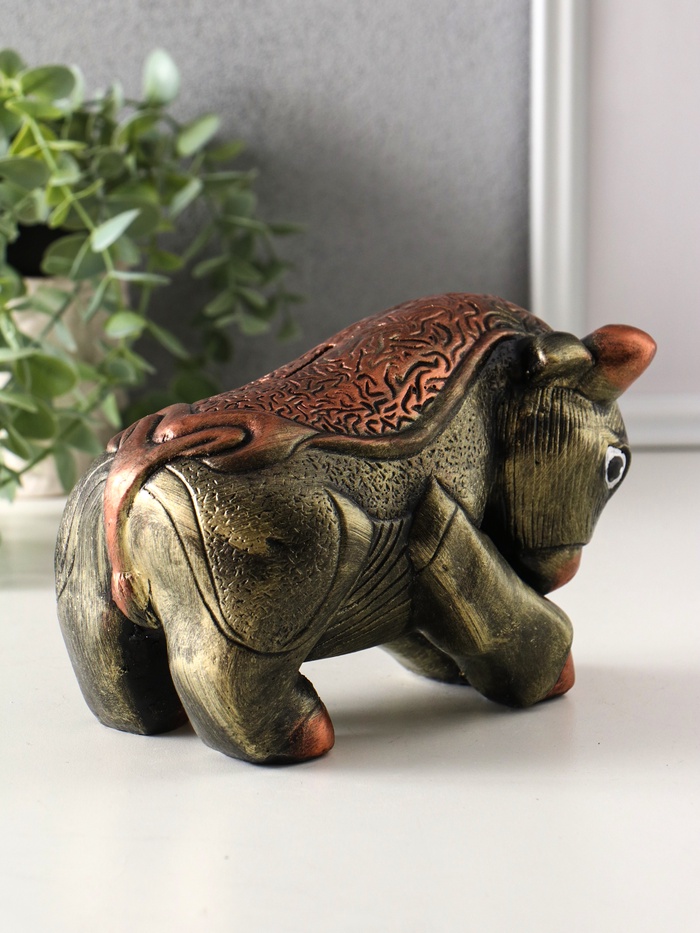 Эта золотая гипсовая копилка в виде быка — не просто ёмкость для хранения, а сильный талисман финансового благополучия. Её классическая форма и солидный золотистый оттенок создают ощущение стабильности и роста, превращая процесс накопления в осознанный ритуал.