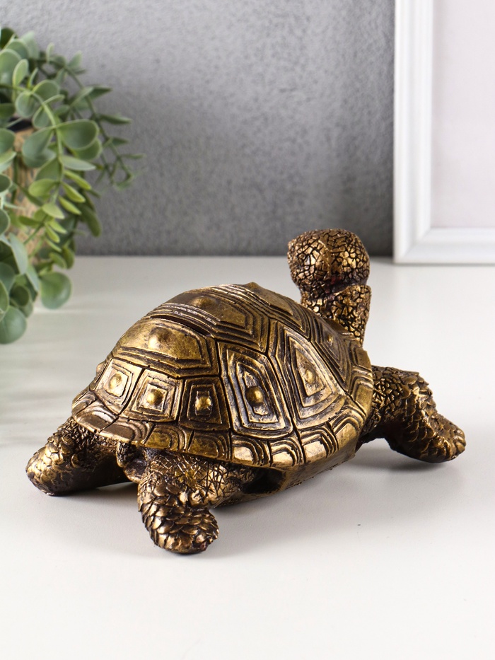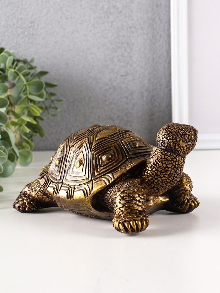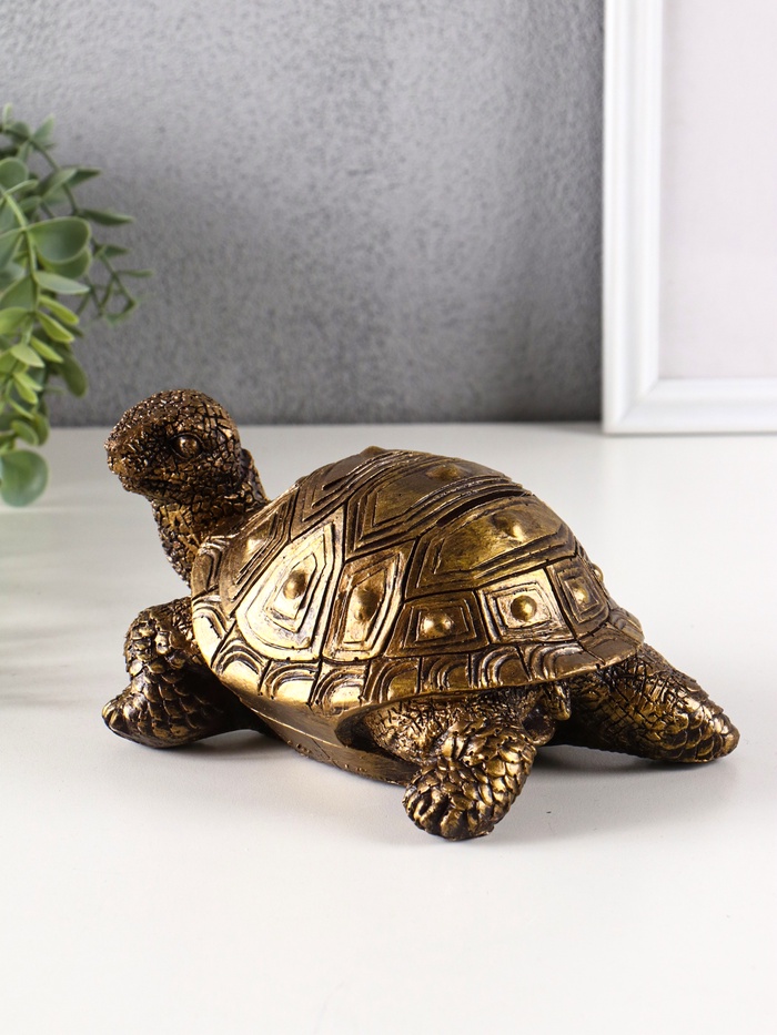 Эта копилка в виде галапагосской черепахи станет не только надёжным хранилищем для ваших сбережений, но и стильным украшением интерьера. Компактные размеры 9,5×18×13,5 см позволяют разместить её на рабочем столе, полке или прикроватной тумбочке, придавая пространству оригинальность и уют. Бронзовое покрытие с аккуратной покраской подчёркивает благородство и природную красоту этого наземного животного.