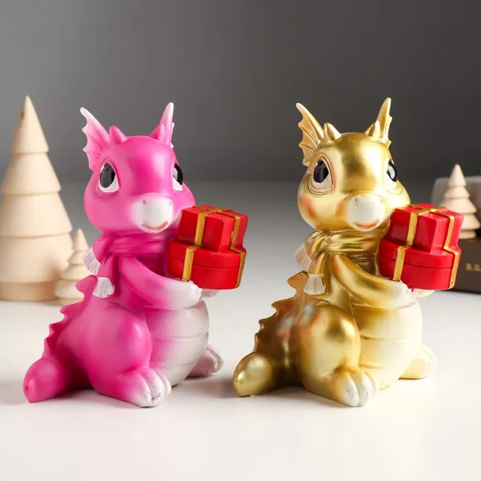 Копилка полистоун "Дракоша в шарфике с подарками" МИКС 9,5х9х13,5 см