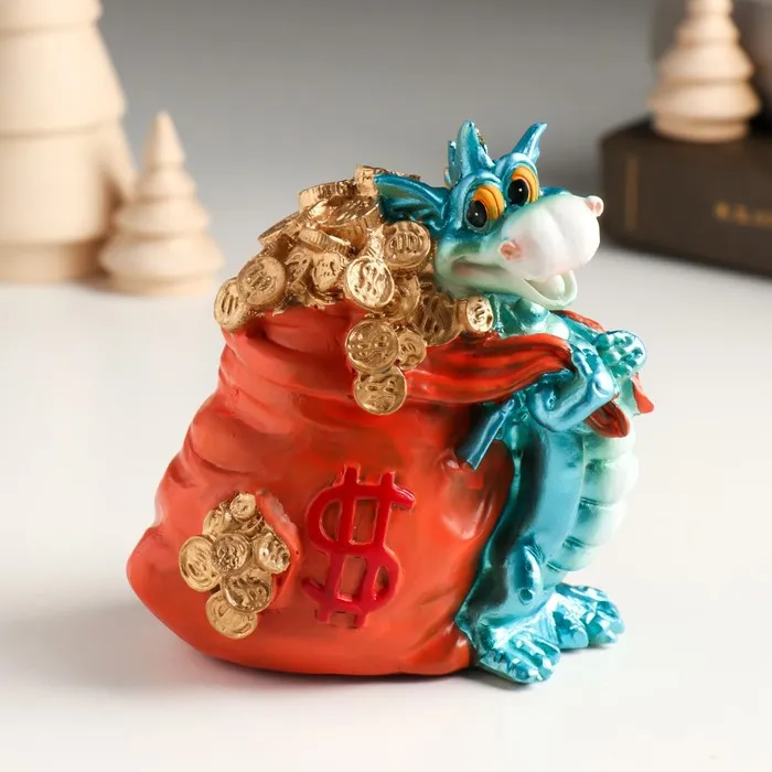 Копилка для денег «Синий дракончик с мешком золотых монет», 10.2×7.2×10.6 см