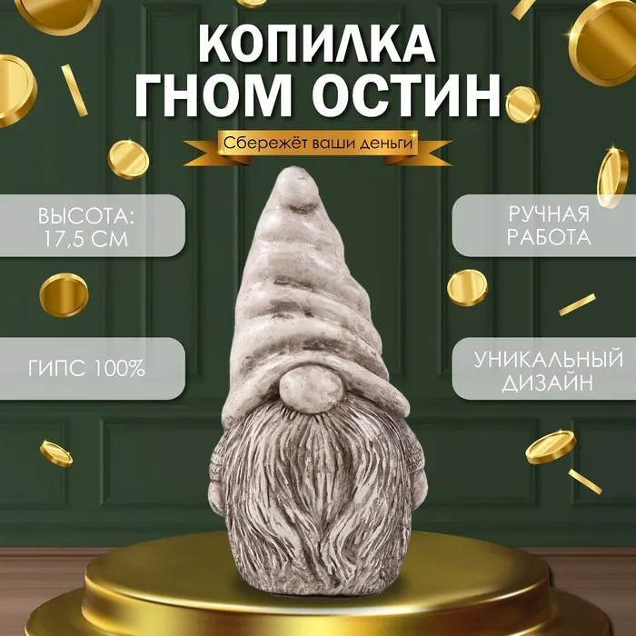 Копилка для денег «Гном Остин », гипс, античный коричневый, 17.5×9.5×8.5 см