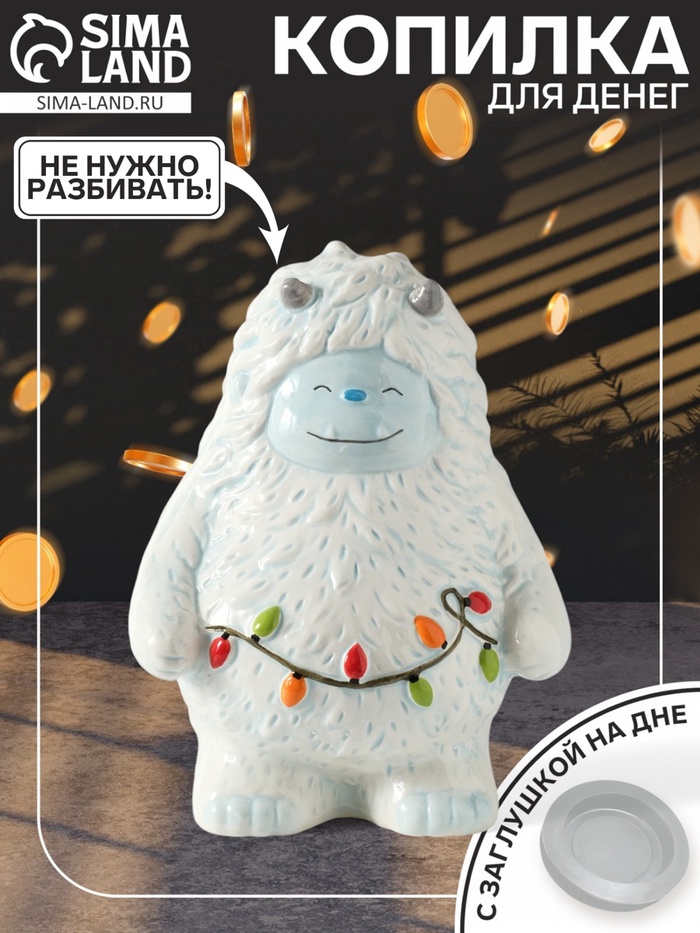 Копилка для денег «Снежный человек с гирляндой», керамика, 11.2×13×18 см