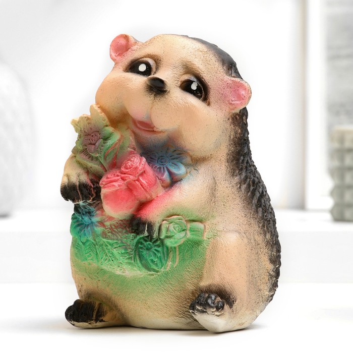 Копилка для денег «Ёжик с цветами», гипс, 11×11×15 см