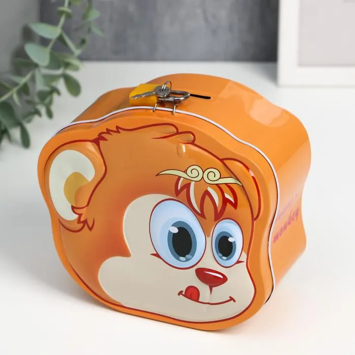 Копилка для денег с замком и ключами «Обезьянка», металл, 13.6×15.2×7.7 см, МИКС