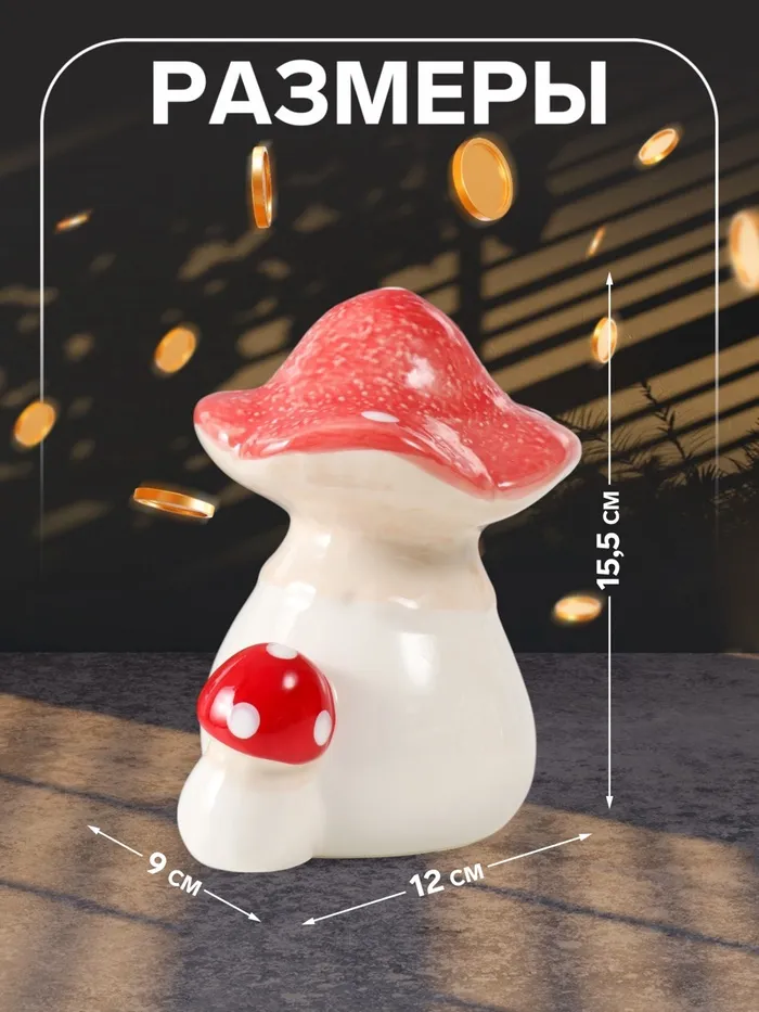 Копилка для денег «Два мухоморчика», керамика, 12×9×15.5 см — Характеристики