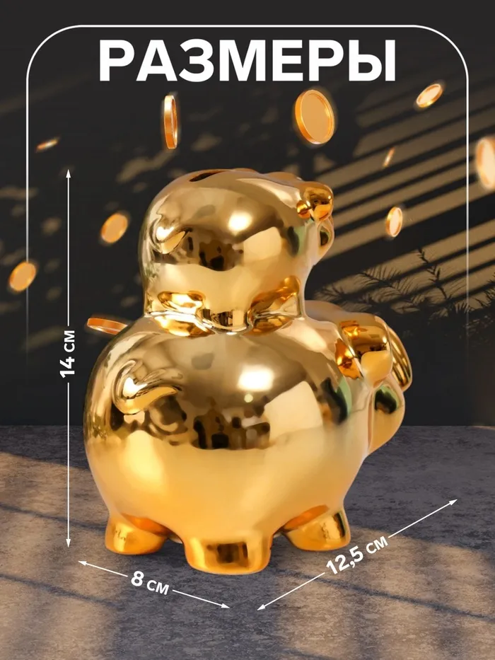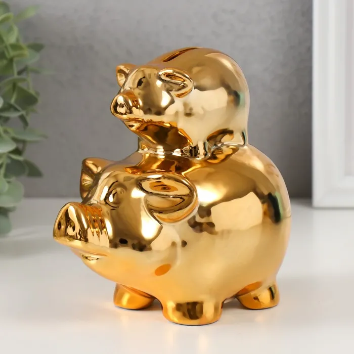 Копилка для денег «Две золотые свинки - пирамида», керамика, 12.5×8×14 см — Характеристики