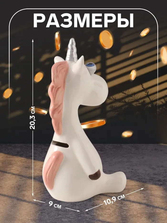 Копилка для денег «Единорожик-пучеглаз», керамика, 9×10.9×20.3 см — Характеристики