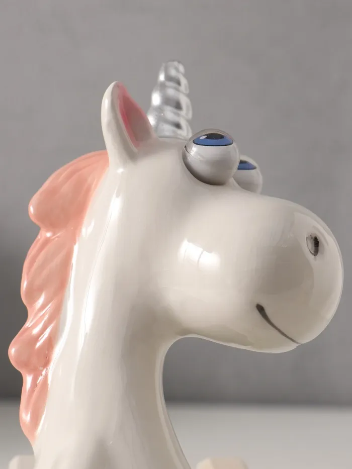 Ваш дом станет еще уютнее и веселее с этой очаровательной копилкой в виде единорога! Сделанная из высококачественной керамики и покрытая глазурью, она не только выполняет свою основную функцию, но и служит стильным украшением интерьера.