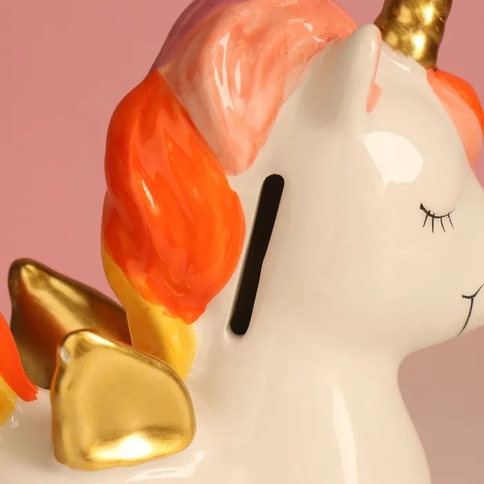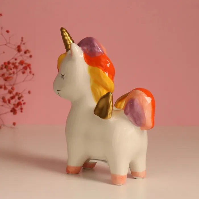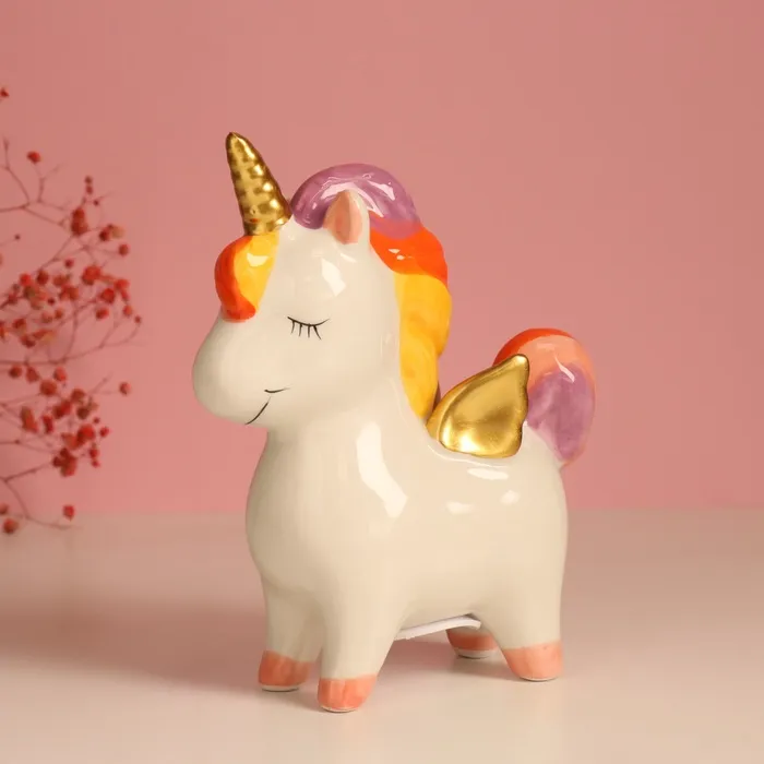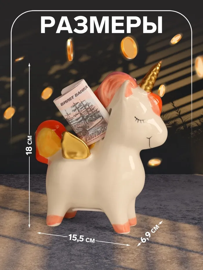 Копилка для денег «Единорожка с золотыми крылышками и рогом», керамика, 15.5×6.9×18 см — Характеристики