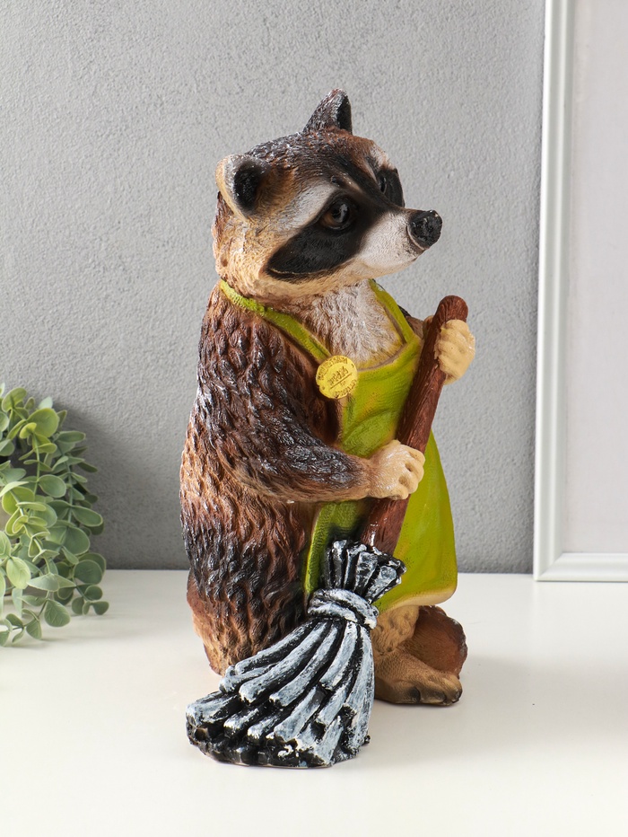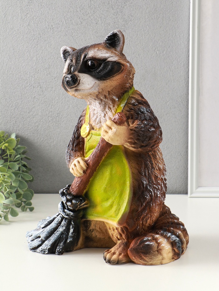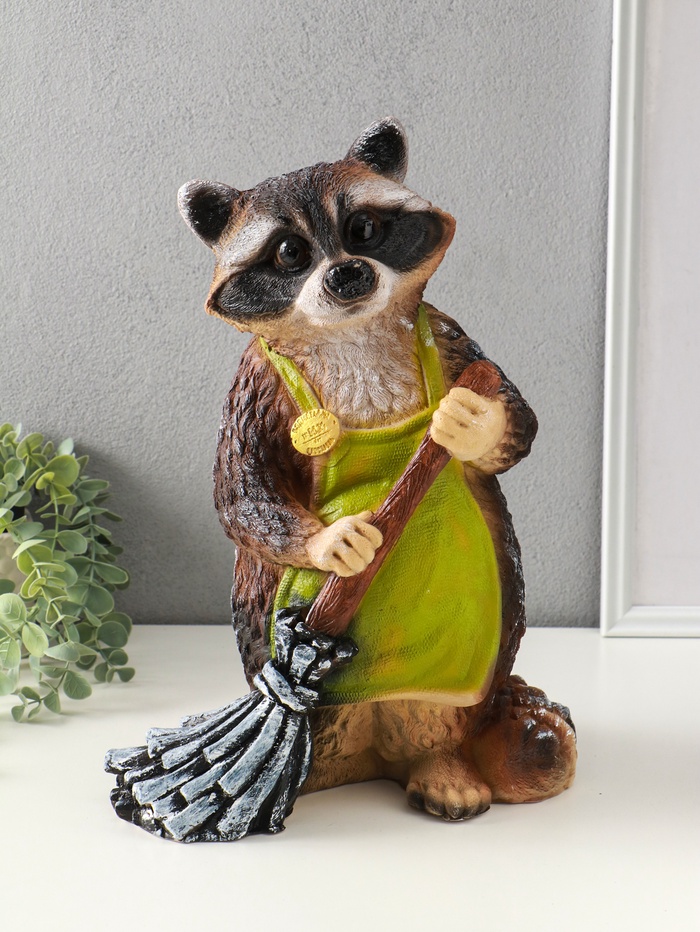 Этот енот-копилка станет не просто хранителем мелочи, а верным финансовым союзником. Он терпеливо ждёт, когда вы доверите ему очередную монетку или купюру, превращая рутину накопления в маленький ритуал. Его серьёзный вид с метлой словно намекает: пора вымести ненужные траты и навести порядок в финансах.
