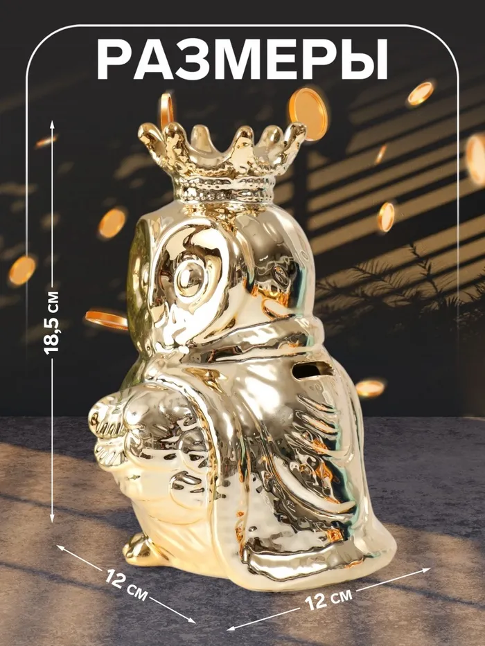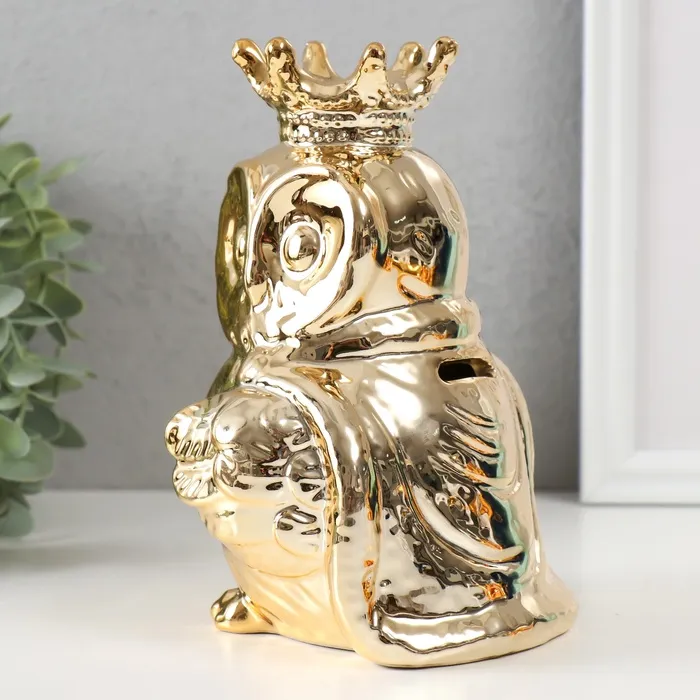 Копилка для денег «Филин в короне и мантии», керамика, золото, 12×12×18.5 см — Характеристики