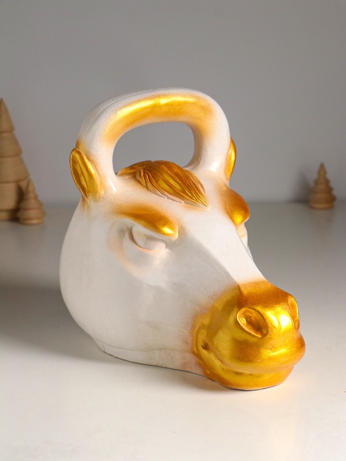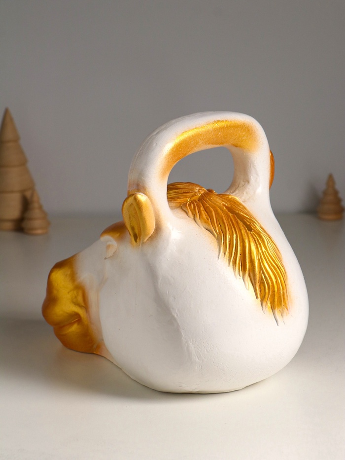 Копилка для денег «Гиря конь», гипс, 21×25 см, бело-золотой — Характеристики