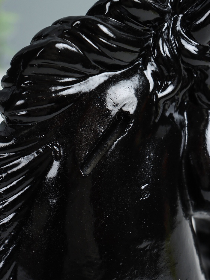 Представляем вашему вниманию уникальный предмет, который сочетает в себе функциональность и элегантность — копилку в виде головы благородного коня. Её чёрный цвет подчёркивает силу и загадочность образа, а тщательно продуманный дизайн делает её не просто аксессуаром для хранения денег, но и стильным элементом интерьера.
