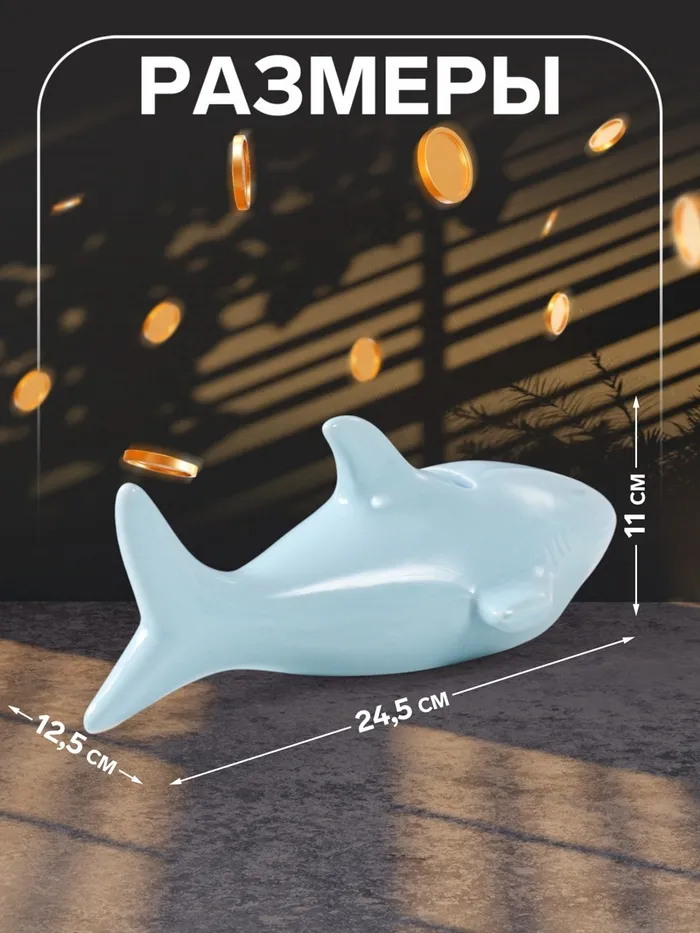 Копилка для денег «Голубая акула», керамика, 24.5×12.5×11 см — Характеристики