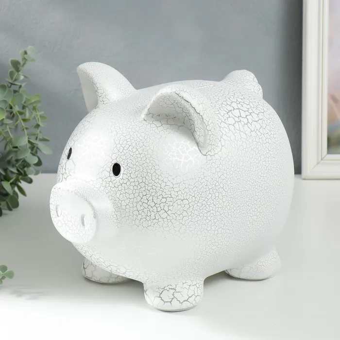 Копилка для денег «Свинка: белый кракелюр», керамика, 30×22×26 см