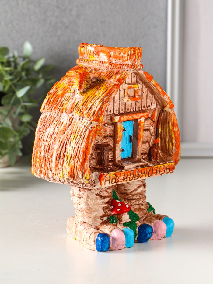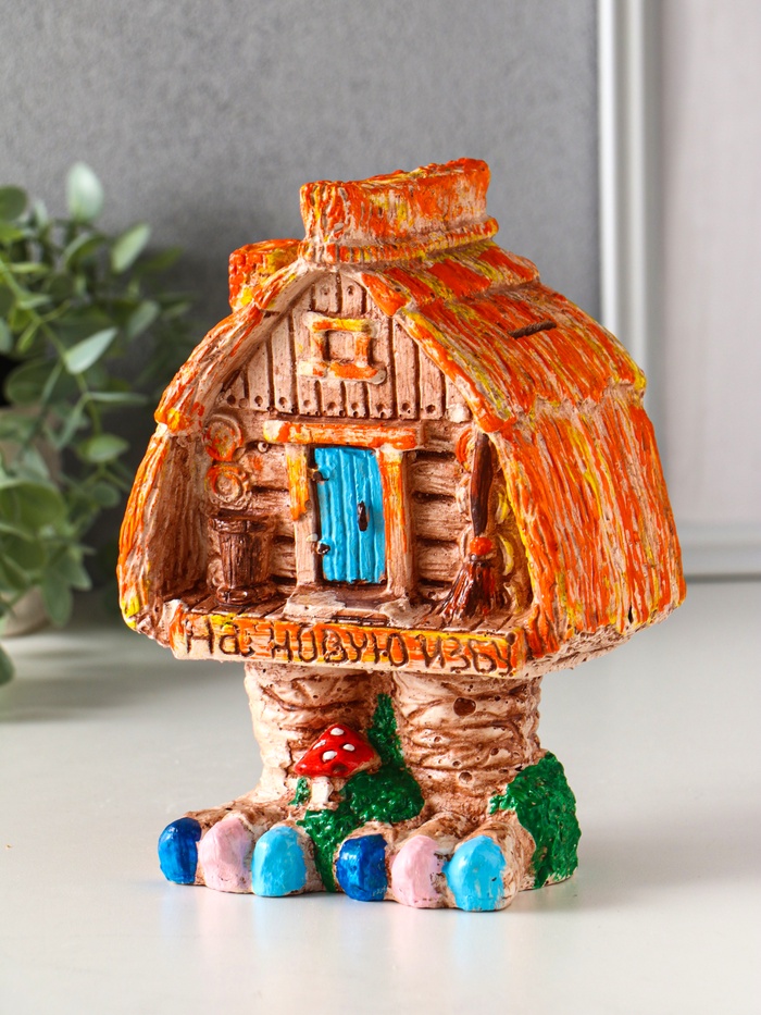 Эта гипсовая копилка в виде сказочного домика превращает накопление в маленькое волшебство. Она станет личным тайником для мелочи или бумажных купюр, помогая собрать сумму на заветную цель. Яркая окраска и узнаваемый образ создают в интерьере уголок русского фольклора.