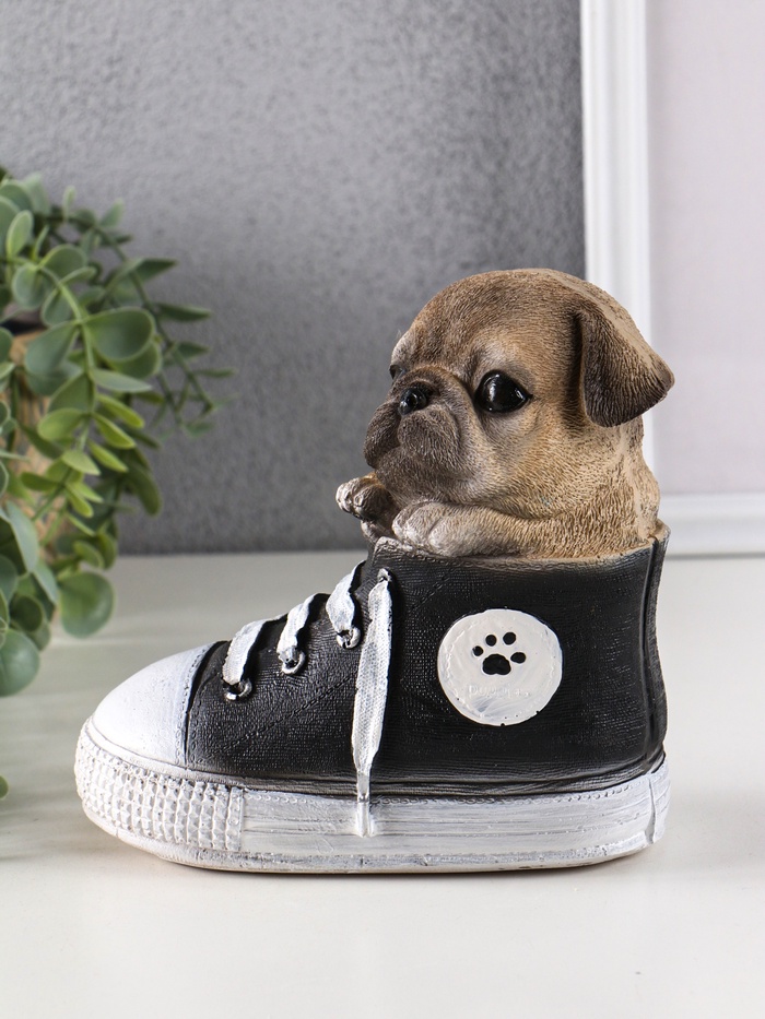 Выбор этой копилки — это решение за стиль и комфорт. Она не только поможет организовать ваши сбережения, но и станет изюминкой вашего пространства, привлекая восхищённые взгляды гостей. Позвольте этому очаровательному кеду со щенком мопса стать частью вашего дома, подчеркнув вашу индивидуальность и внимание к деталям.
