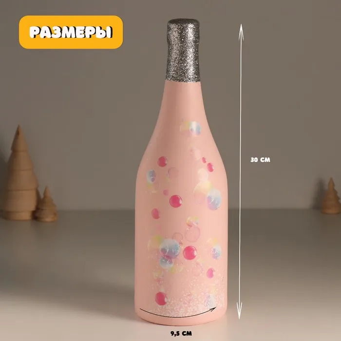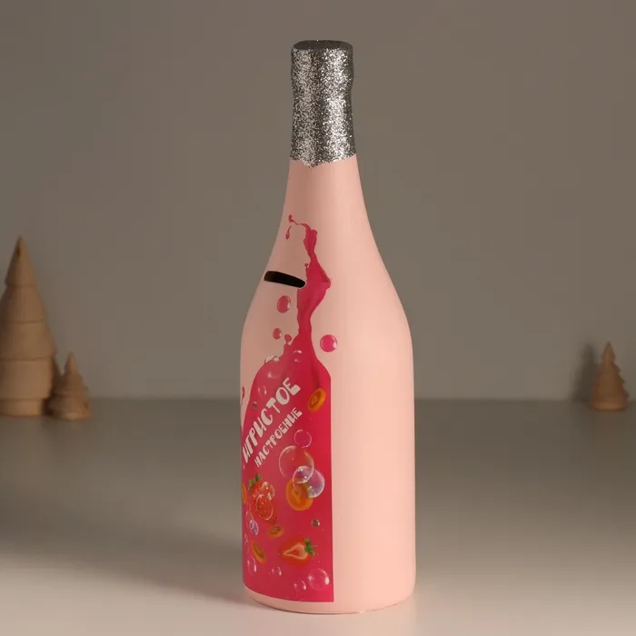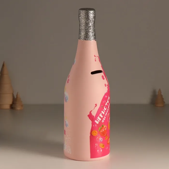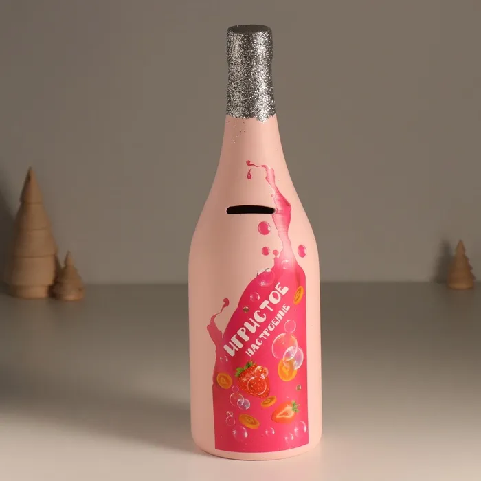 Копилка для денег керамика «Бутылка. Игристое настроение», розовая 9.5×9.5×30 см — Характеристики