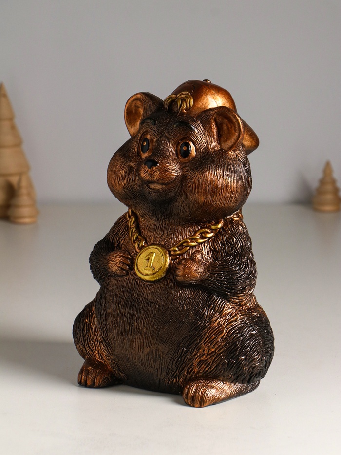 Эта гипсовая копилка в виде хомяка станет не просто ёмкостью для накоплений, а настоящим талисманом, который превратит процесс сбора денег в приятный ритуал. Его стильный винтажный вид и добродушное выражение мордочки поднимут настроение и украсят интерьер.